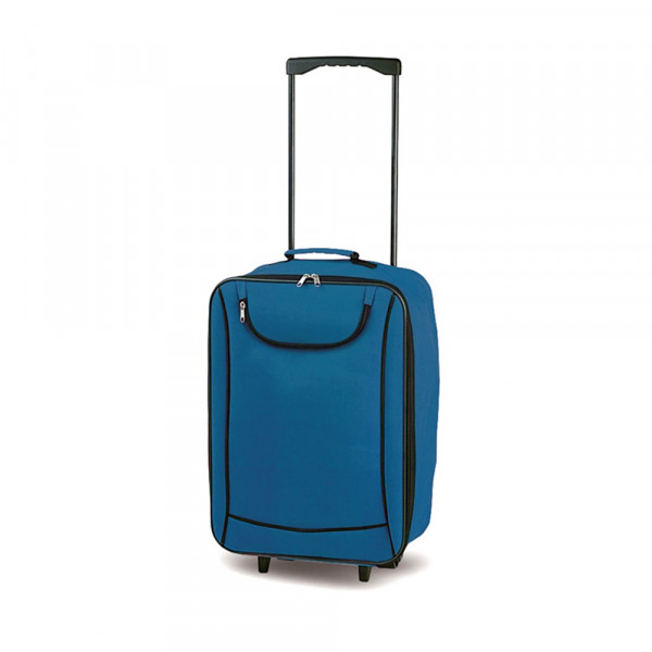 Klappbarer Trolley mit 2 Rollen aus robustem Polyester 600D mit lebendigem, zweifarbigem Design. Hauptfach mit Innenfutter, Doppelreißverschluss und Fronttasche mit Reißverschluss. Mit gepolstertem Tragegriff und verstärktem Boden mit stabilen Standbeinen und farblich passenden Rollen.