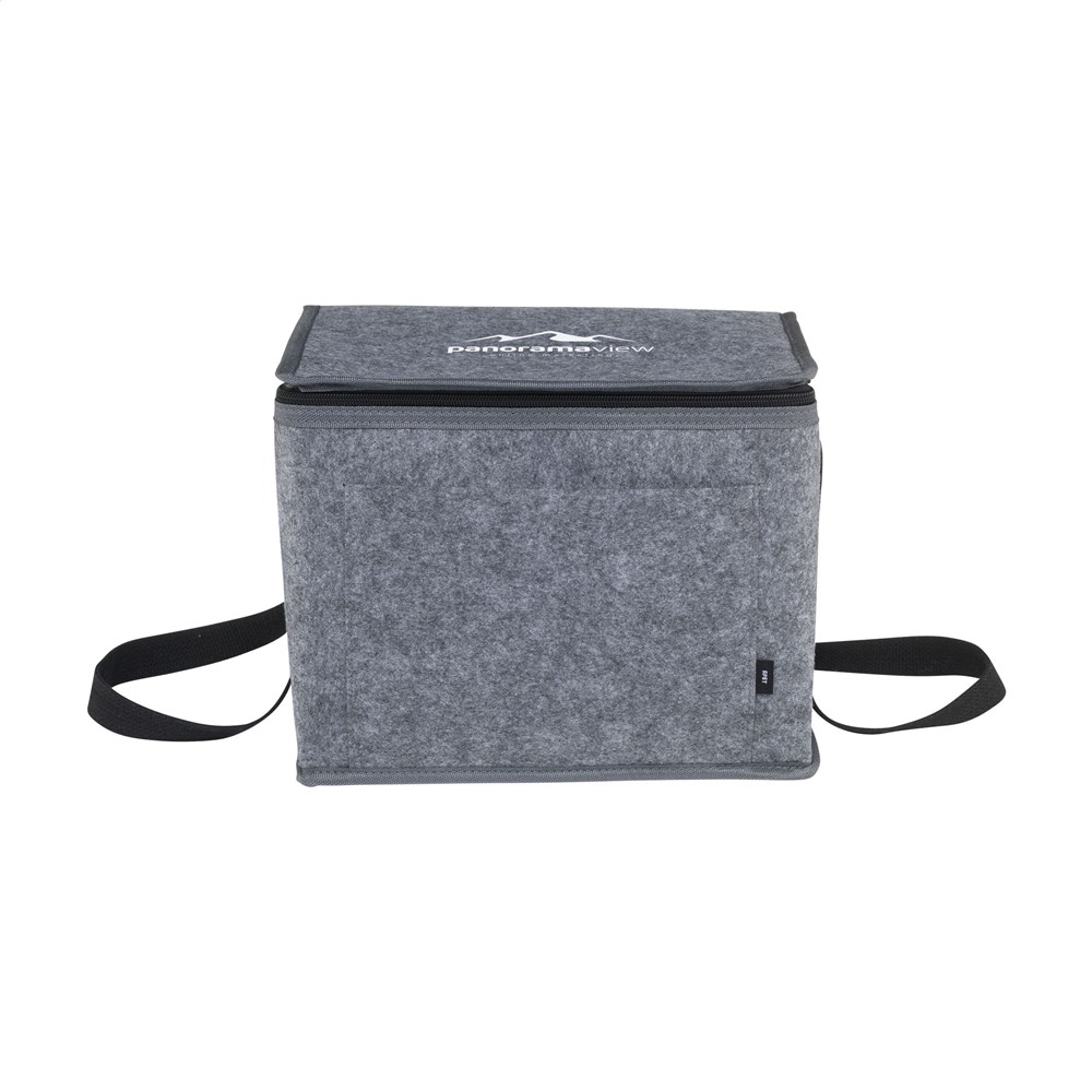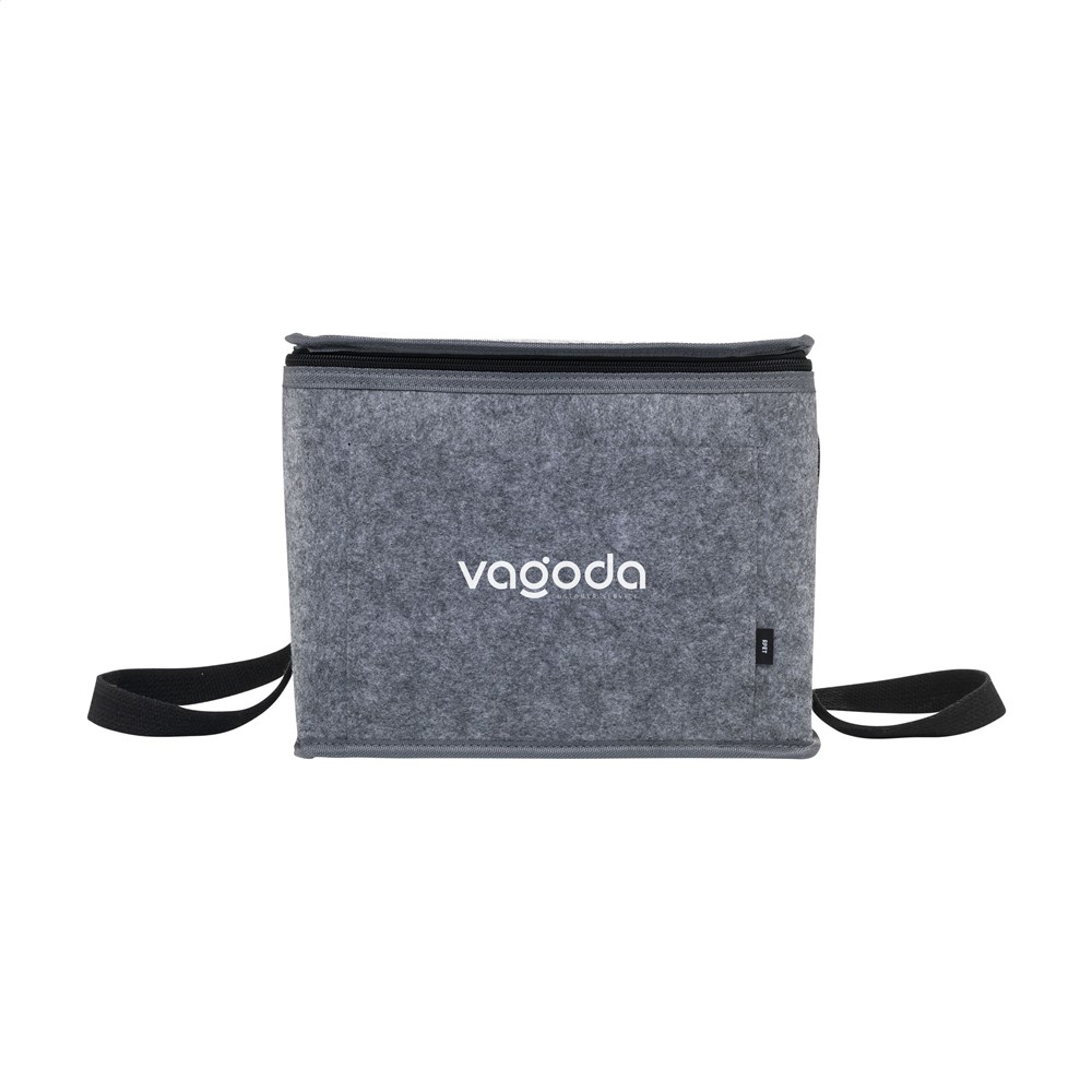Großzügige Kühltasche aus RPET-Filz (hergestellt aus recycelten PET-Flaschen). Auskleidung aus 100% PEVA. Mit Trageriemen.