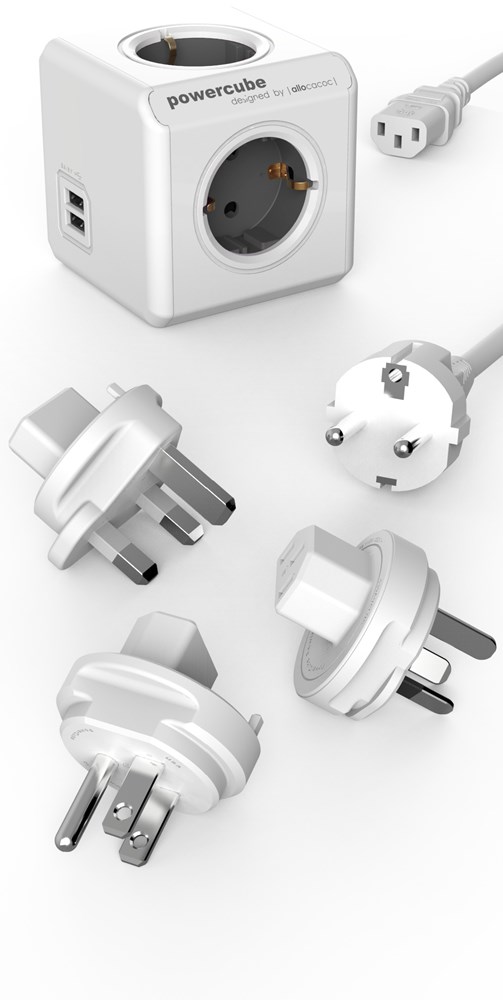 Der PowerCube ReWirable Duo USB ist eine elegante Reisebuchse mit 4 integrierten Buchsen und 2 USB-Anschlüssen (Ausgang 5 V / 2,1 A). Mit dieser Mehrfachsteckdose haben Sie 4 zusätzliche Steckdosen in Reichweite auf der ganzen Welt. Die USB-Anschlüsse bieten die Möglichkeit, Mobiltelefone, Tablets, GPS, Kameras, MP3-Player und ähnliche Geräte schnell und einfach aufzuladen. Die Ladezeit des Akkus ist viel kürzer als beim Laden mit einem PC oder Laptop.