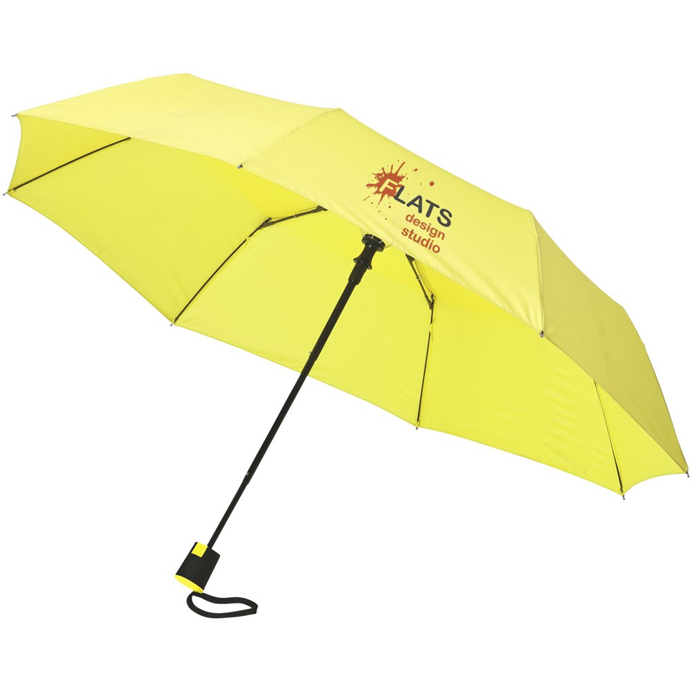 21" Schirm mit Metallrahmen, Glasfaserspeichen und gummibeschichtetem Kunststoffgriff. Schirm wird mit einer Hülle geliefert.