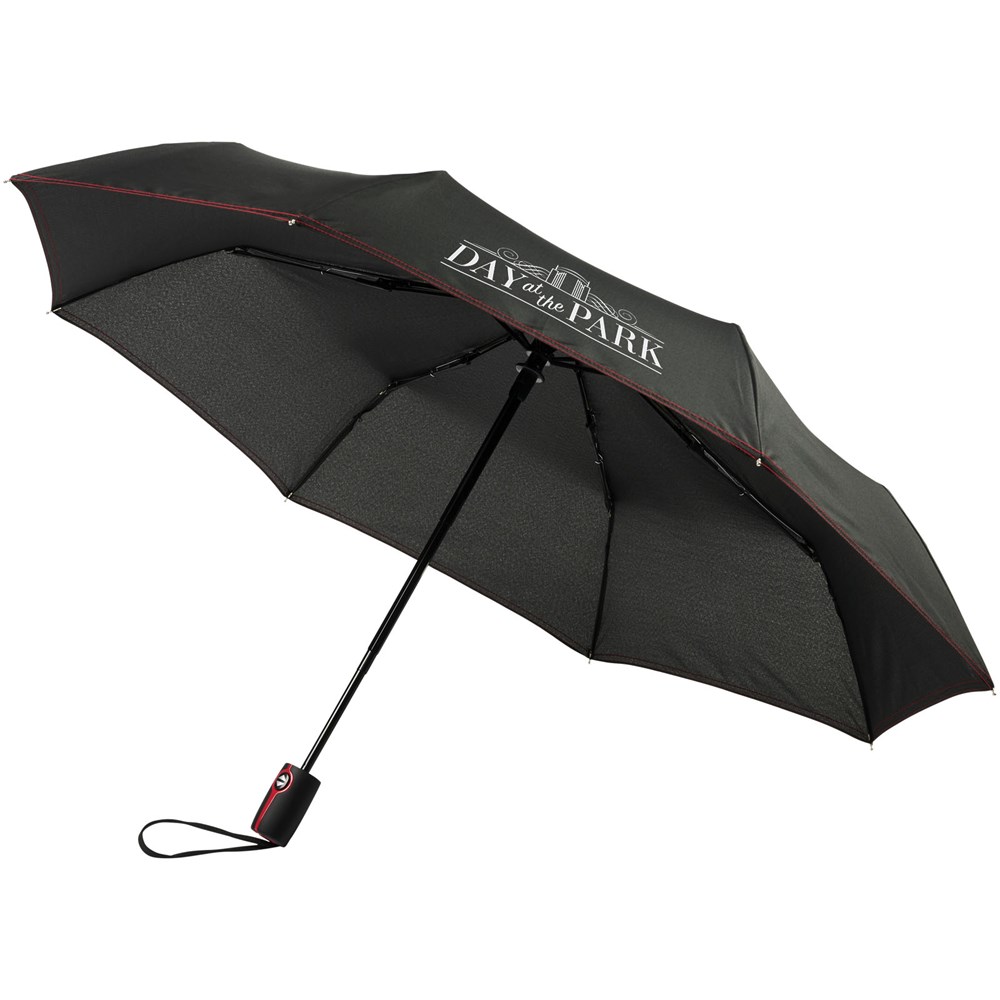 Vollautomatik Kompaktregenschirm mit einem Polyesterschirm aus Pongee-Polyester. Robuster Metallschaft, hochwertiger Rahmen mit Glasfaserrippen, der maximale Flexibilität bei windigem Wetter bietet. Wird mit einem Beutel geliefert und passt für den bequemen Transport problemlos in eine Handtasche oder einen Rucksack. Farbige Details sind auf dem Soft-Touch-Griff und den detaillierten Nähten von Schirm und Beutel erhältlich. Große Dekorationsfläche auf jedem Paneel sowie auf dem Griff.