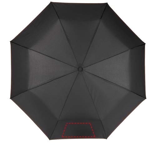 Vollautomatik Kompaktregenschirm mit einem Polyesterschirm aus Pongee-Polyester. Robuster Metallschaft, hochwertiger Rahmen mit Glasfaserrippen, der maximale Flexibilität bei windigem Wetter bietet. Wird mit einem Beutel geliefert und passt für den bequemen Transport problemlos in eine Handtasche oder einen Rucksack. Farbige Details sind auf dem Soft-Touch-Griff und den detaillierten Nähten von Schirm und Beutel erhältlich. Große Dekorationsfläche auf jedem Paneel sowie auf dem Griff.