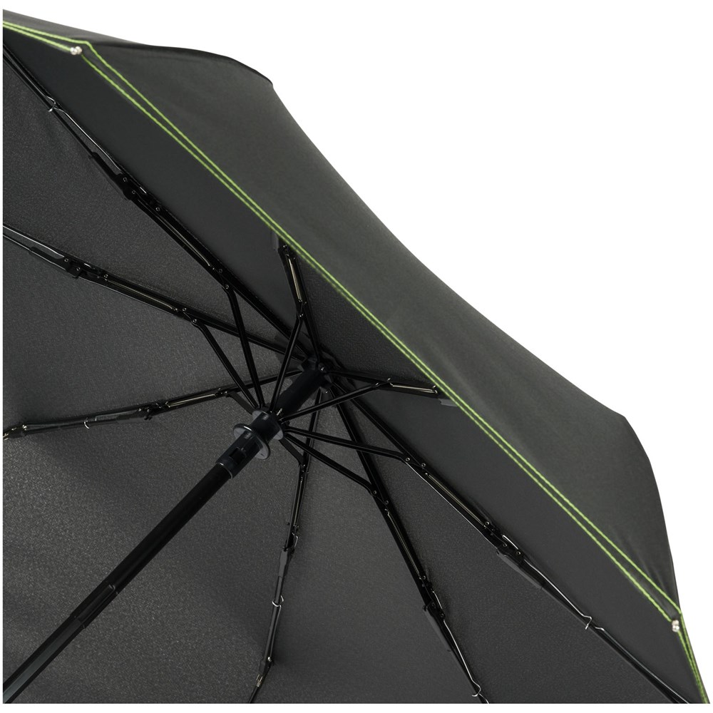 Vollautomatik Kompaktregenschirm mit einem Polyesterschirm aus Pongee-Polyester. Robuster Metallschaft, hochwertiger Rahmen mit Glasfaserrippen, der maximale Flexibilität bei windigem Wetter bietet. Wird mit einem Beutel geliefert und passt für den bequemen Transport problemlos in eine Handtasche oder einen Rucksack. Farbige Details sind auf dem Soft-Touch-Griff und den detaillierten Nähten von Schirm und Beutel erhältlich. Große Dekorationsfläche auf jedem Paneel sowie auf dem Griff.