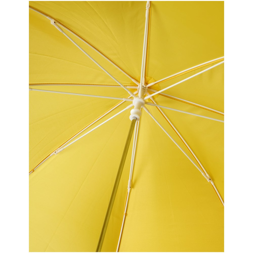 Sicherer und einfach zu bedienender Regenschirm in vielen verschiedenen frischen Farben mit großer Dekorationsfläche. Der Regenschirm lässt sich mit dem federlosen Sicherheitsläufer leicht öffnen und schließen. Robuste Konstruktion mit einem verchromten Stahlschaft, Glasfaserrippen und -spannern, großen abgerundeten Spitzen und Oberseite, die maximale Sicherheit an jedem regnerischen und windigen Tag bieten.