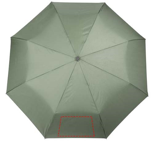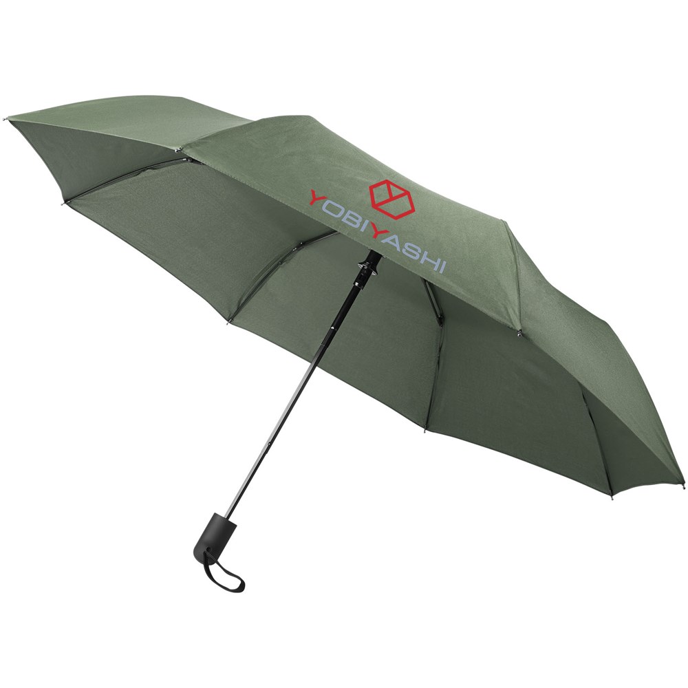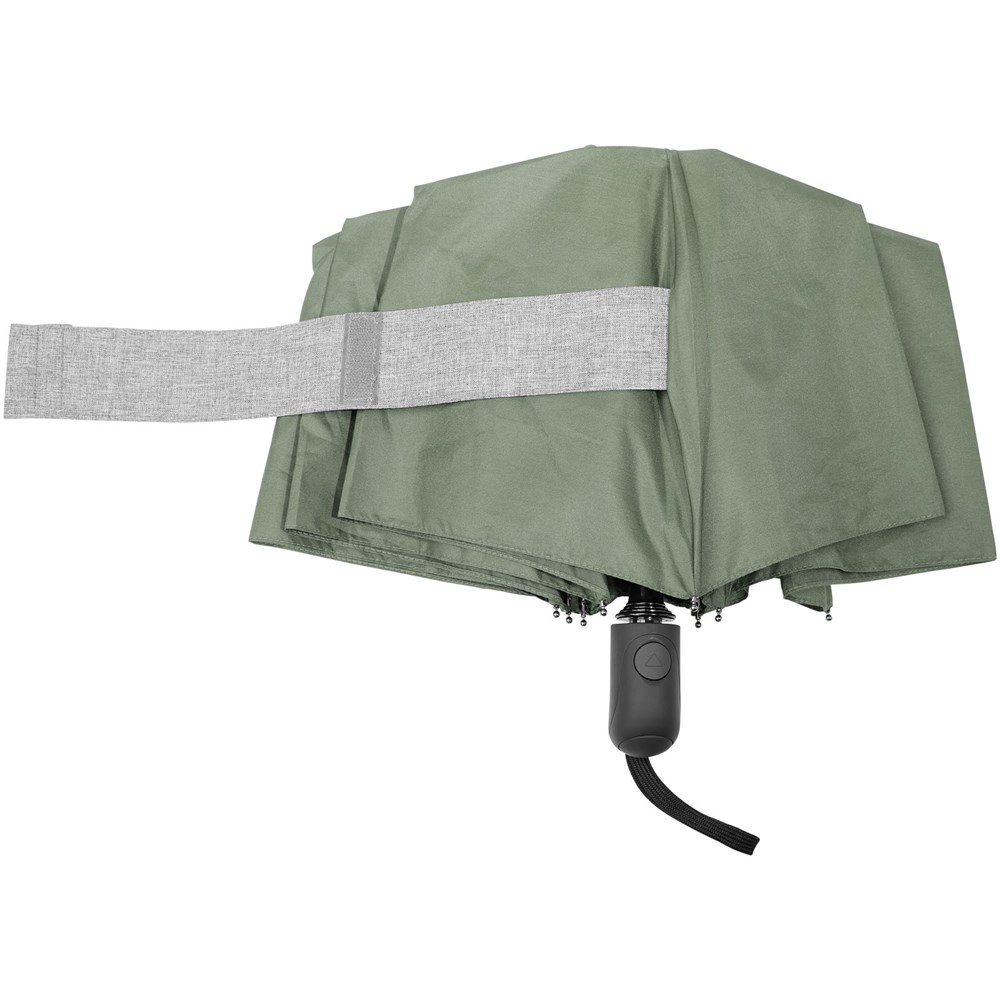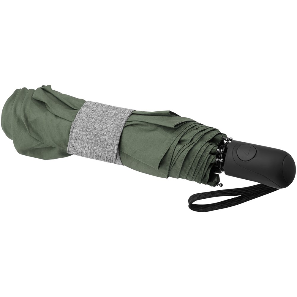 Der Gisele 21“ Automatikschirm mit Baldachin aus Polyesterseide, robustem Gestänge aus schwarzem Metall, gummiertem Griff und einem Sicherheitsschieber mit Einklemmschutz. Mit einem trendigen, 5 cm breiten, grau-melierten Riemen.