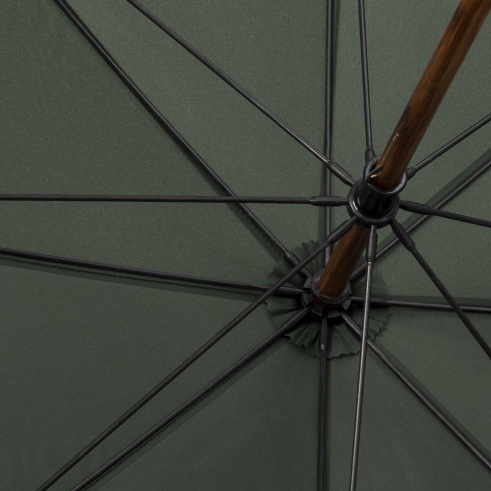 Golfschirm HUNTER - OKTAGON® - GOLFsize - Handöffner - Windproof-System schwarzes, flexibles Fiberglasgestell mit reversiblen Fiberglasspeichen für eine hohe Belastbarkeit und Flexibilität bei stärkerem Wind - stabiler 14mm Holzstock - 25mm Holzrundhakengriff - Holzspeichentips - Polyester-Pongee-Bespannung mit schmutz- und wasserabweisender Hydrophob-Ausrüstung - komfortables Klettverschlussband - Speichenlänge ca. 75cm - Durchmesser ca. 130cm - Länge ca. 104cm - Gewicht ca. 490g