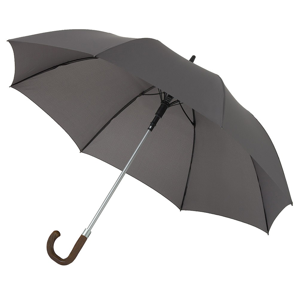 Golfschirm FENRIS - OKTAGON® - MIDsize - Automatik - Windproof-System Praktische Automatik zum leichten Öffnen - schwarzes, flexibles Fiberglasgestell mit reversiblen Fiberglasspeichen für eine hohe Belastbarkeit und Flexibilität bei stärkerem Wind - stabiler 14mm Aluminiumstock - exklusiver, gebogener Ergonomie-Rundhaken-Griff in Holz-Optik / aluminiumfarben - mit integrierter Automatik-Auslösetaste, Kunststoff-Kappe mit 'anti-slide' Gummi-Spitze in schwarz, 'gunmetal'-farbene Speichentips,- Polyester-Pongee-Bespannung mit schmutz- und wasserabweisender Hydrophob-Ausrüstung - komfortables Klettverschlussband - Speichenlänge ca. 70cm - Durchmesser ca. 120cm - Länge ca. 93cm - Gewicht ca. 565g