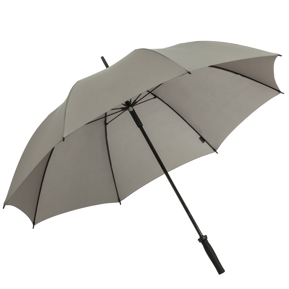 Golfschirm GOLFER - OKTAGON® - GOLFsize - Handöffner - Windproof-System schwarzes, flexibles Fiberglasgestell mit reversiblen Fiberglasspeichen für eine hohe Belastbarkeit und Flexibilität bei stärkerem Wind - grosser Schieber mit Einrast-Druckknopf zum sicheren Öffnen - stabiler 14mm Fiberglasstock - schwarzer, gerader, profilierter 'soft-touch' Kunststoffgriff - schwarze Kunststoffspeichentips - Polyester-Pongee-Bespannung mit schmutz- und wasserabweisender Hydrophob-Ausrüstung - komfortables Klettverschlussband - Speichenlänge ca. 75cm - Durchmesser ca. 130cm - Länge ca. 102cm - Gewicht ca. 560g