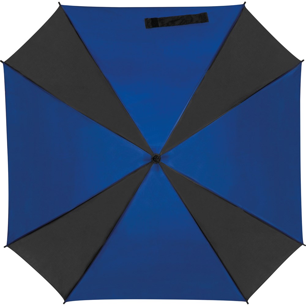 Automatik-Regenschirm aus Aluminium mit Softgriff, Bespannung aus Polyester und Segmenten in unterschiedlicher Farbe und Größe. Ihre Werbung wird auf ein Segment gedruckt.