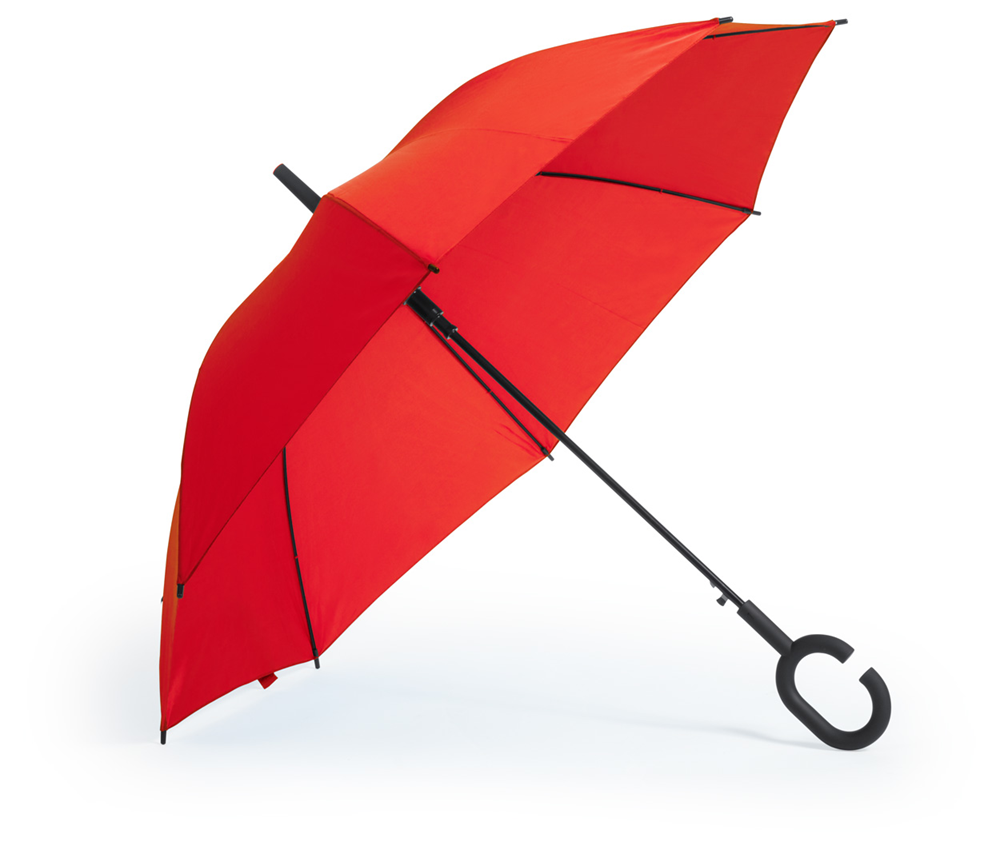 Automatischer Windproof-Stockschirm mit 8 Segmenten, praktischem gummiertem Griff, Stock und Rahmen aus Metall, Speichen aus Fiberglas. Material: 170T Polyester.