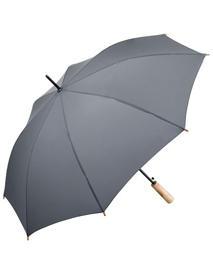 Komfortable Automatik-Funktion zum schnellen Öffnen | Windproof-Features für höhere Gestell-Flexibilität und bessere Windsicherheit | Flexible Fiberglasschienen | Polyester-Pongee Bezugsmaterial aus recycelten Kunststoffen | Echtholz-Spitzen | Gerader Echtholzgriff mit Werbeanbringungsmöglichkeit | Höherer Korrosionsschutz durch schwarze Galvanisierung des Stahlstocks