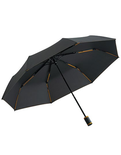 Einfache Handhabung durch Sicherheitsschieber | Hochwertiges Windproof-System für eine maximale Gestell-Flexibilität bei stärkeren Windböen | Flexible Fiberglasschienen | Polyester-Pongee Bezugsmaterial aus recycelten Kunststoffen, umweltfreundlich dank original waterSAVE Bezugsmaterial | Ansprechendes Design durch farbige Schienen, Griffringe und Nähte | Soft-Touch-Griff mit Werbeanbringungsmöglichkeit | Futteral mit farbiger Naht | Griff aus Kunststoff
