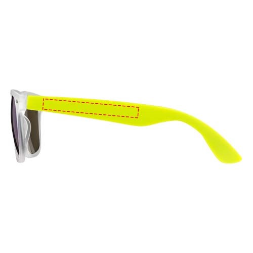 Trendige Sonnenbrille im exklusiven Design mit Gläsern der Kategorie 3 und UV400 Schutz. Polycarbonatgestell und Acrylgläser. Mit Mikrofaserbeutel, der auch als Reinigungstuch verwendet werden kann. Verpackt in einem exklusiven Geschenkbeutel. EN ISO 12312-1 konform.