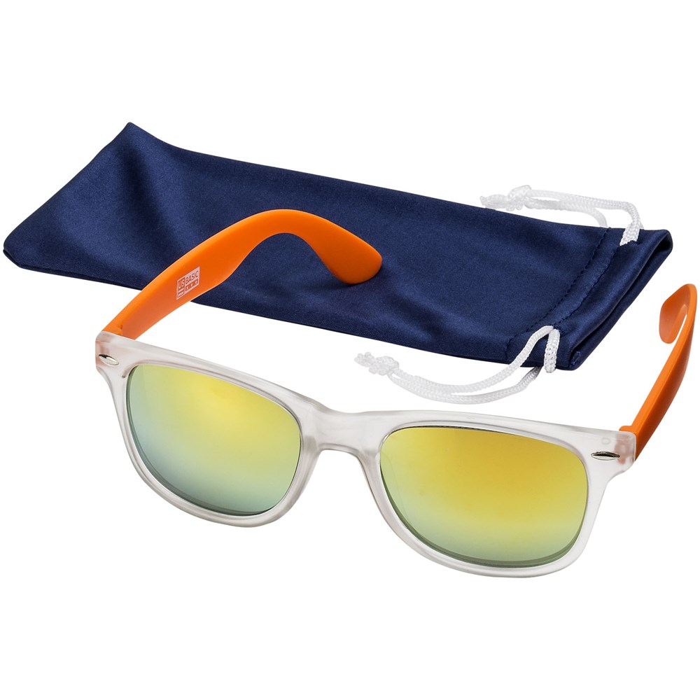Trendige Sonnenbrille im exklusiven Design mit Gläsern der Kategorie 3 und UV400 Schutz. Polycarbonatgestell und Acrylgläser. Mit Mikrofaserbeutel, der auch als Reinigungstuch verwendet werden kann. Verpackt in einem exklusiven Geschenkbeutel. EN ISO 12312-1 konform.