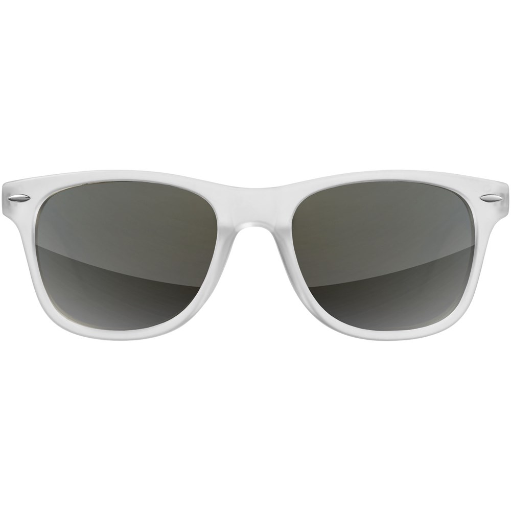 Trendige Sonnenbrille im exklusiven Design mit Gläsern der Kategorie 3 und UV400 Schutz. Polycarbonatgestell und Acrylgläser. Mit Mikrofaserbeutel, der auch als Reinigungstuch verwendet werden kann. Verpackt in einem exklusiven Geschenkbeutel. EN ISO 12312-1 konform.