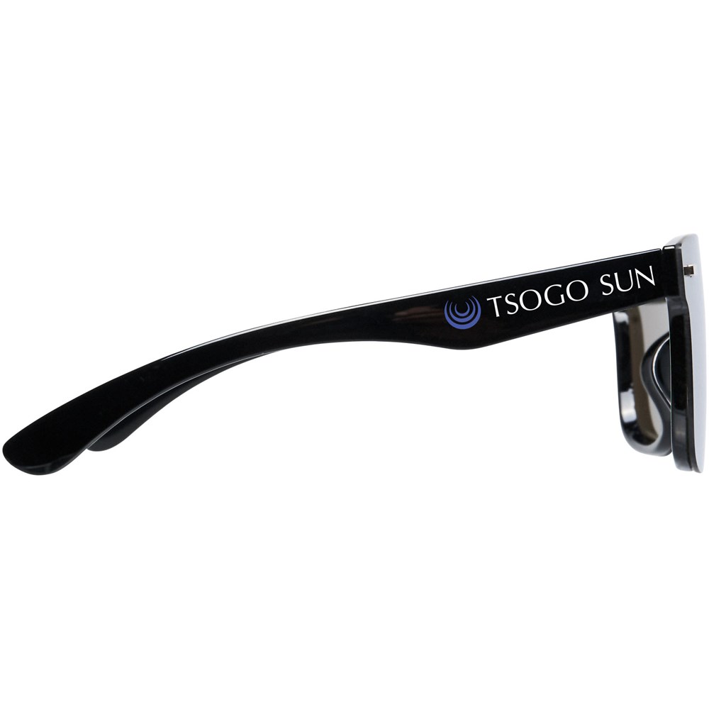 Shield Sonnenbrille mit trendigem Design und vollverspiegelten Gläsern. Erfüllt EN ISO 12312-1 und UV 400, die Gläser sind als Kategorie 3 eingestuft.