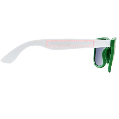 Sun Ray Sonnenbrille im Retro Design mit weißen Bügeln für viele Veredelungsmöglichkeiten. Erfüllt EN ISO 12312-1 und UV 400; die Gläser sind in Kategorie 3 eingestuft.