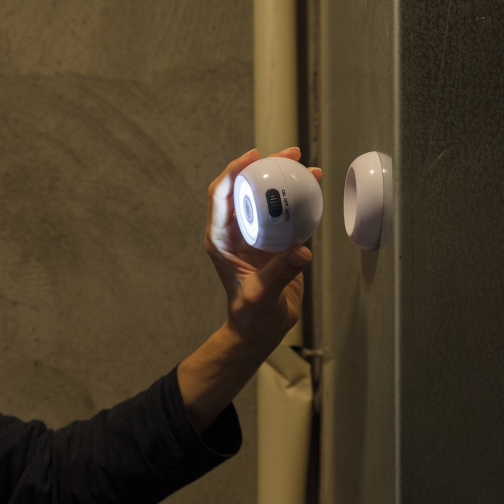 Ultrahelle COB Leuchte aus ABS mit magnetischer Halterung und doppelseitigem 3M Klebestreifen um die Basis auf allen glatten Oberflächen zu befestigen. Die Lampe verfügt über einen Bewegungssensor und wird Ihren Weg selbst ohne an- und ausschalten erhellen. Die Lampe selbst hält magnetisch an der Basis und kann nun in alle Richtungen gedreht werden. Inkl. Batterien.
