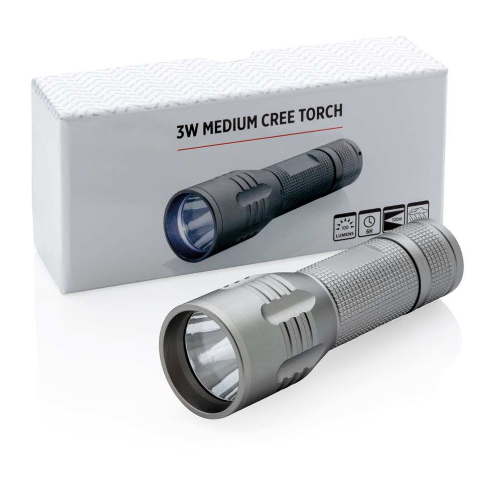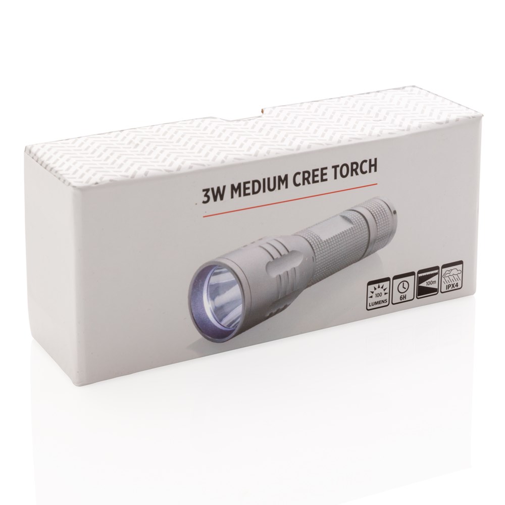 Diese langlebige Aluminium Taschenlampe verfügt über spezielle CREE LED´s welche extra helles Licht ausstrahlen. Die CREE Technologie überschreitet mit Ihren 100 Lumen deutlich die Helligkeit normaler LED´s und kann bis zu 15h genutzt werden. Inklusive Batterien für den sofortigen Gebrauch.