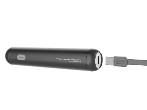 Die helle Farbe ist warmweiß (3500K) und das Gewicht beträgt 109 Gramm. Das FlashLight/NightLight Rechargeable ist in der Farbe Dunkelgrau erhältlich.