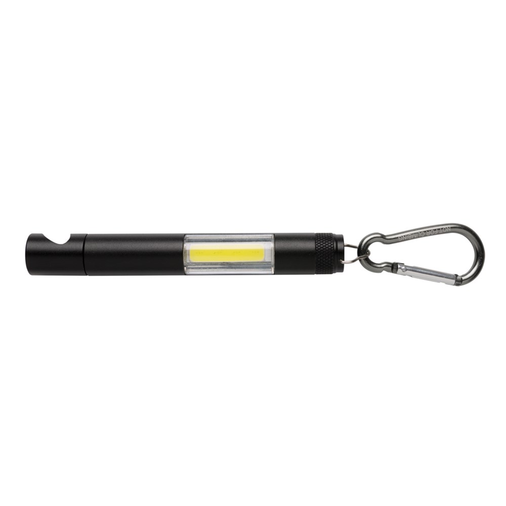 1W ultra-helle Aluminium COB (Chip-On-Board) Leuchte mit rückseitigem Kapselheber und Karabiner. Batterien inklusive.