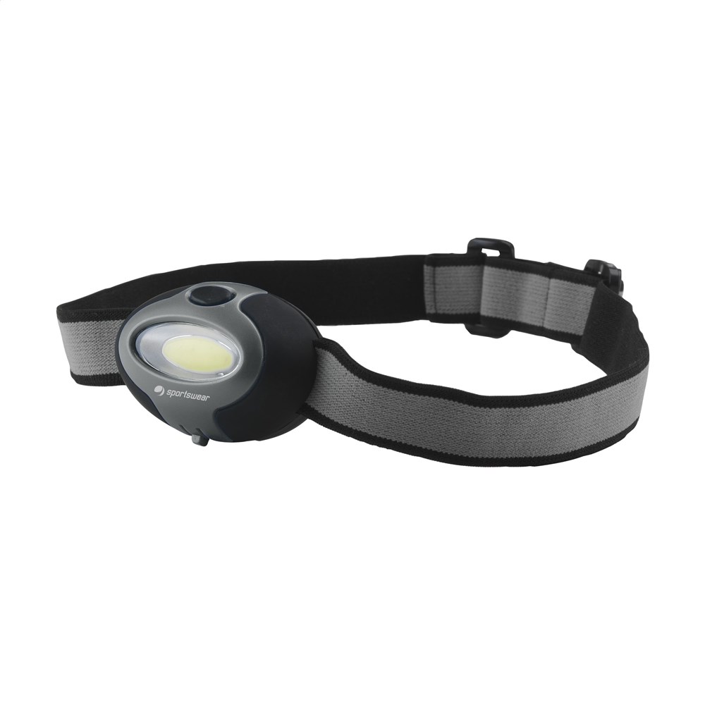 ABS Kopflampe mit COB LED. Strahlt in enorm hellen, weißen Licht. An einem elastischen Kopfband. Extrem praktisch für Aktivitäten im Freien. Inkl. Knopfzellen. Pro Stück in einer Box.