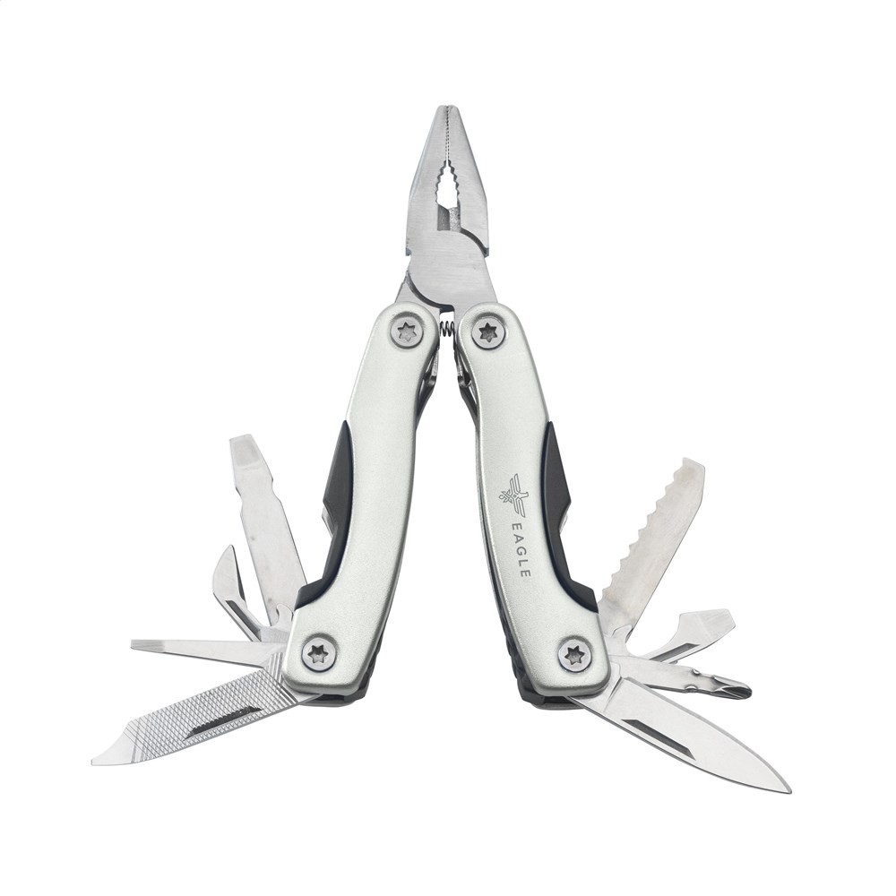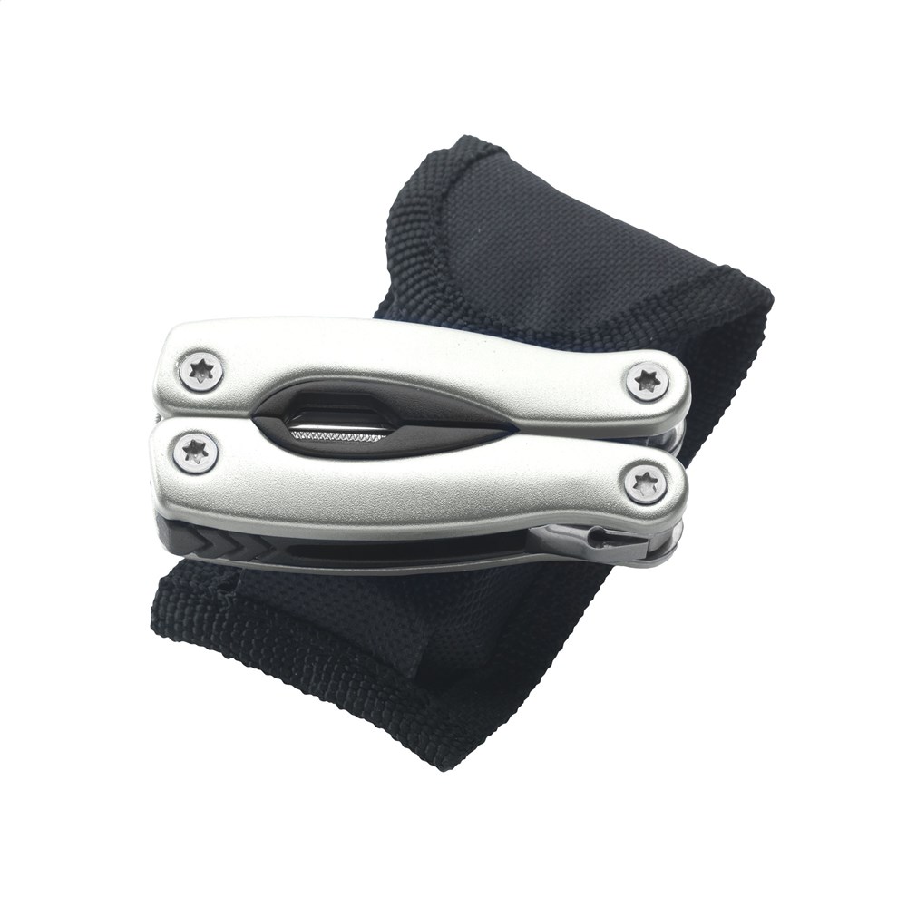 Kompakte Multizange aus Edelstahl mit Handgriff aus Aluminium im Metalliclook. 9-teilig mit 13 Funktionen: Zange, Isolierzange, 3 Schraubenzieher, Reibahle, Feile, Dosenöffner, Kapselheber, Fischentschupper, Haken-Entferner, Messer, Kreuzschraubenzieher. Mit Schloss. In einem Nylonetui. Beachten Sie, dass möglicherweise lokale Vorschriften für den Besitz und / oder das Tragen von Messern oder Multitools in der Öffentlichkeit gelten. Pro Stück in einer Verpackung.
