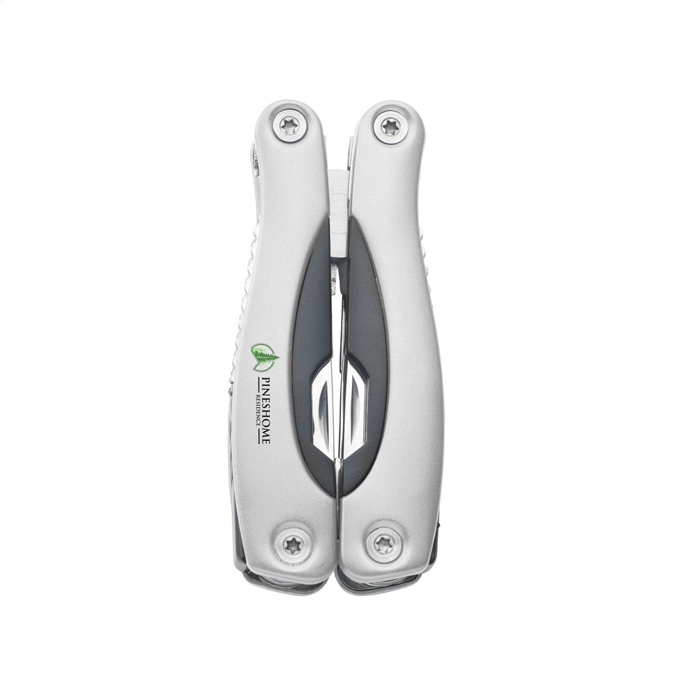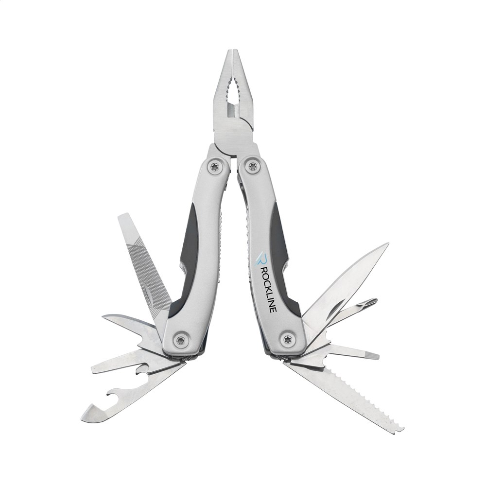 Kompakte Multizange aus Edelstahl mit Aluminiumhandgriff in Metallic-Look. 9-teilig mit 13 Funktionen: Zange, Isolierzange, 3 Schraubenzieher, Kreuzschraubenzieher, Feile, Säge/Fischentschupper, Messer, Reibahle, Dosenöffner und Kapselheber. In einem 600D Nylonetui.Beachten Sie, dass möglicherweise lokale Vorschriften für den Besitz und / oder das Tragen von Messern oder Multitools in der Öffentlichkeit gelten. Pro Stück in einer Verpackung.