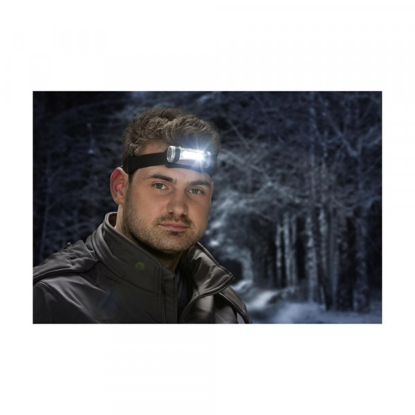 Lampe aus Kunststoff mit 4 hellen LED-Lämpchen. In 3 Einstellungen zu gebrauchen. Die Lampe ist an einem Halter mit verstellbarem, elastischem Band befestigt, das auf dem Kopf getragen werden kann. Inkl. Batterien. Pro Stück in einer Verpackung.