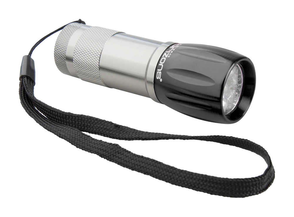 Taschenlampe aus Aluminium mit 9 LED's und Handschlaufe. Exkl. Batterien (3 x AAA). Orizons Markenprodukt.