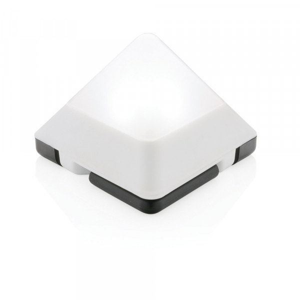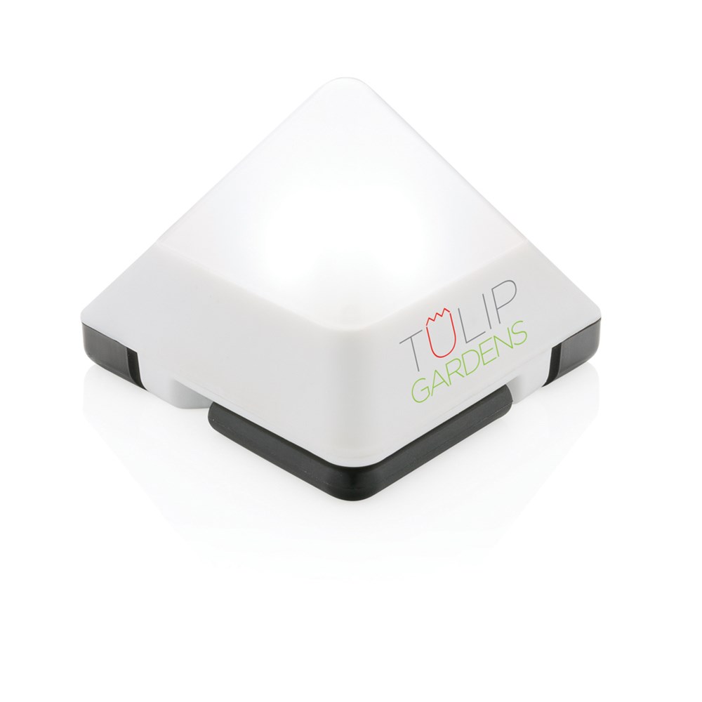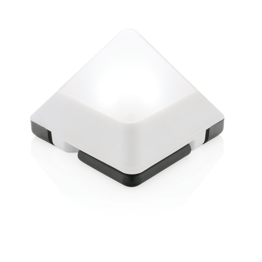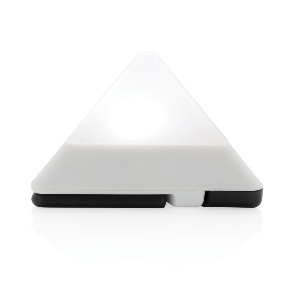 Die Laterne in dreiecksform aus ABS hat einen ausklappbaren Haken und 2 Magneten um sie überall anbringen zu können. Das Licht kann in 3 Modi eingestellt werden: hell, gedimmt und Notfall-Blinken. Inkl. Batterien.