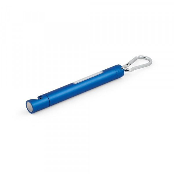 Taschenlampe aus Aluminium mit LED COB Light, Flaschenöffner, Karabiner und Magnet an der Spitze. Inklusive 5 LR44-Batterien. ø15 x 130 mm