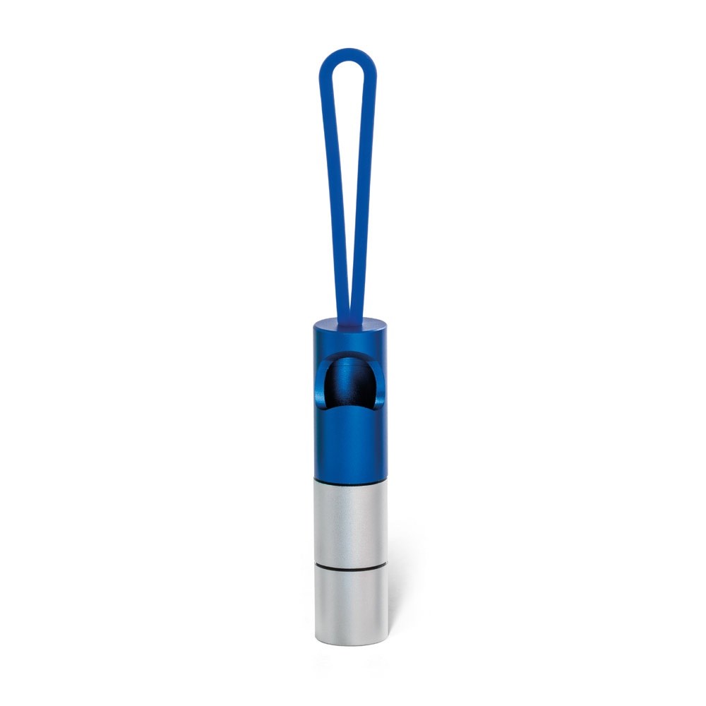 Taschenlampe aus Aluminium mit einem LED Licht, einem Flaschenöffner und einem Silikonband. Inklusive 3 LR44 Batterien. ø17 x 73 mm | Silikonband: 60 mm