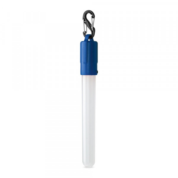 LED Taschenlampe im Röhrenformat mit Karabinerhaken. Diese Taschenlampe hat einen Ein-/Ausschalter und 4 LR41-Batterien. 136 x 18 mm