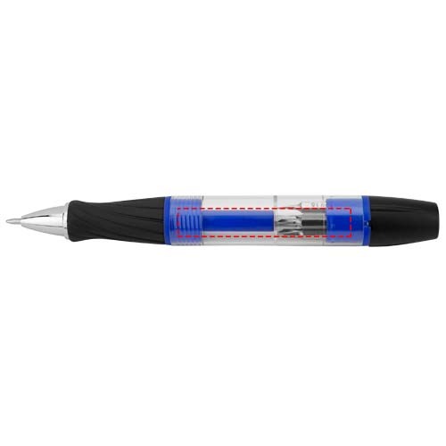 Stift mit Drehmechanismus in der Spitze, abschraubbarem Schaft mit magnetischem Bit Halter inkl. 5 Bits und drehbarer LED Lampe oben. Inkl. Batterien.