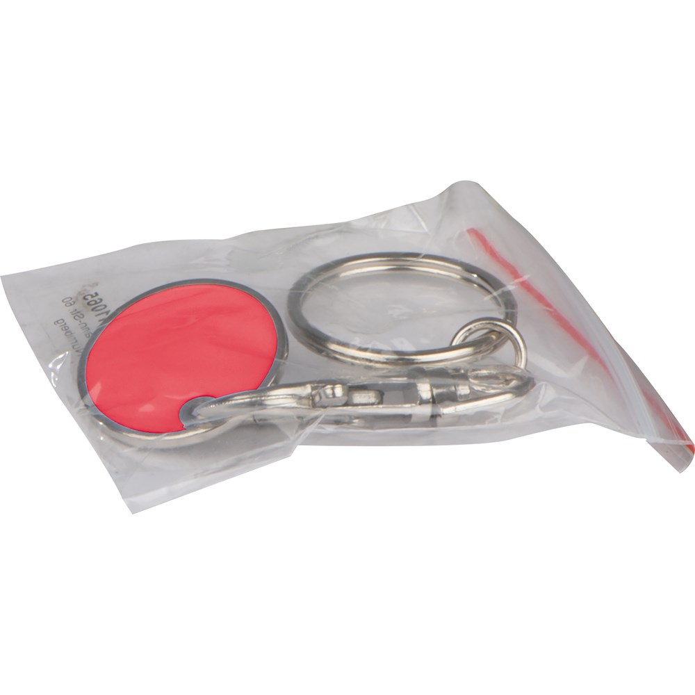 Schlüsselanhänger mit einem durch einen Karabinerhaken abnehmbaren Einkaufschip. Ihre Werbung... mehr