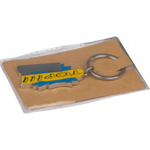 Schlüsselanhänger aus Metall mit farblich lackierter Vorderseite. Ihre Werbung wird auf das dafür... mehr