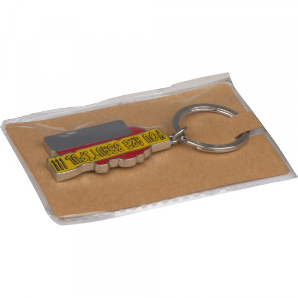 Schlüsselanhänger aus Metall mit farblich lackierter Vorderseite. Ihre Werbung wird auf das dafür... mehr
