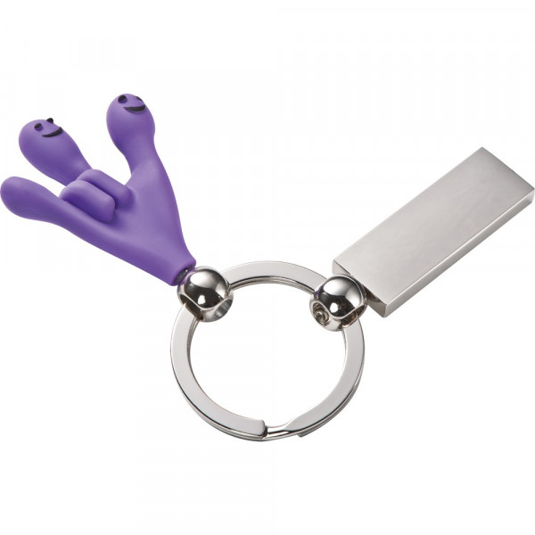 Schlüsselanhänger aus Metall mit gummierten Smile Hand Designs. Ihre Werbung wird per Lasergravur auf das dafür vorgesehene Plättchen angebracht.