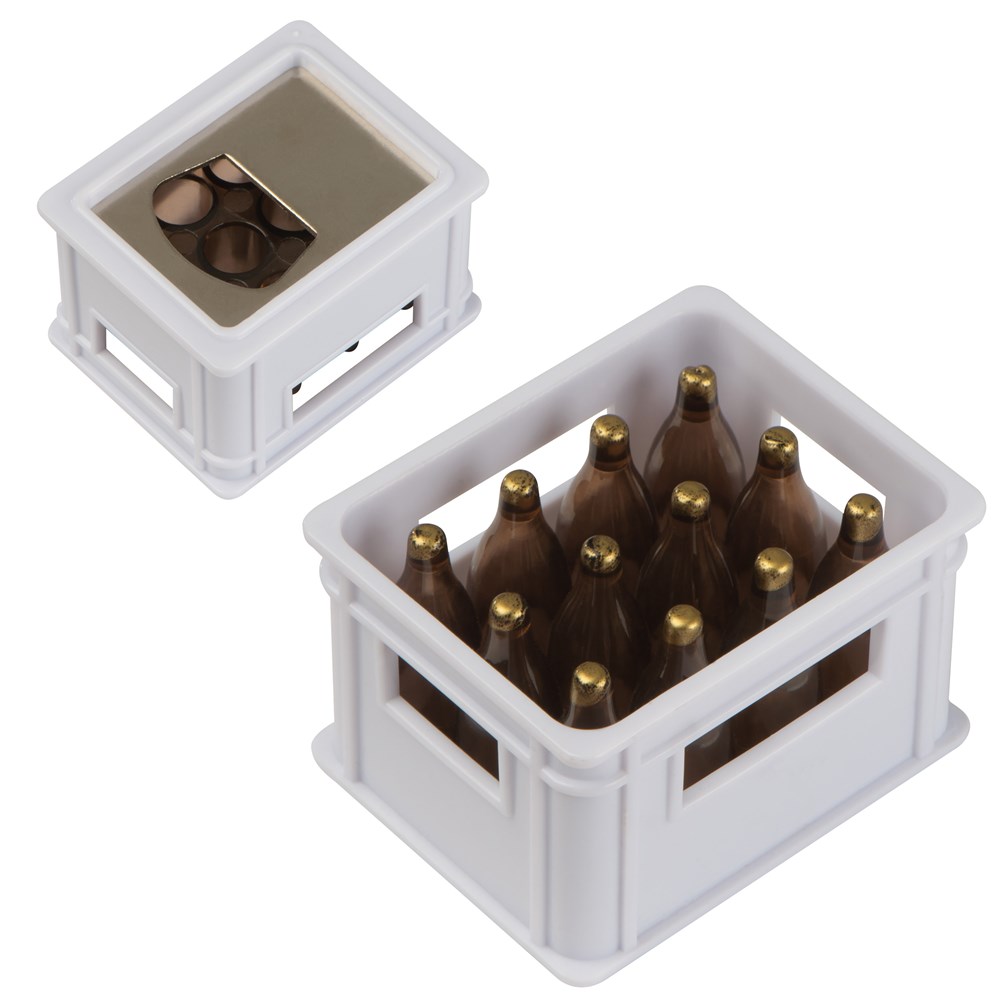 Flaschenöffner aus Kunststoff in der Form eines Bierkastens. Ihre Werbung wird auf den Bierkasten... mehr