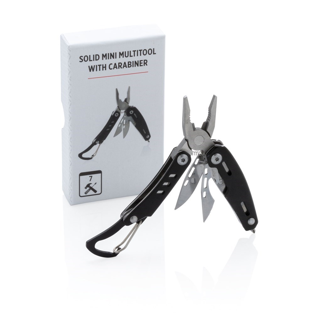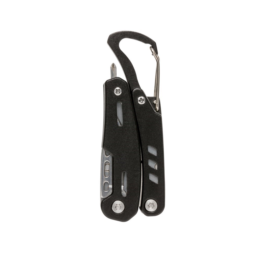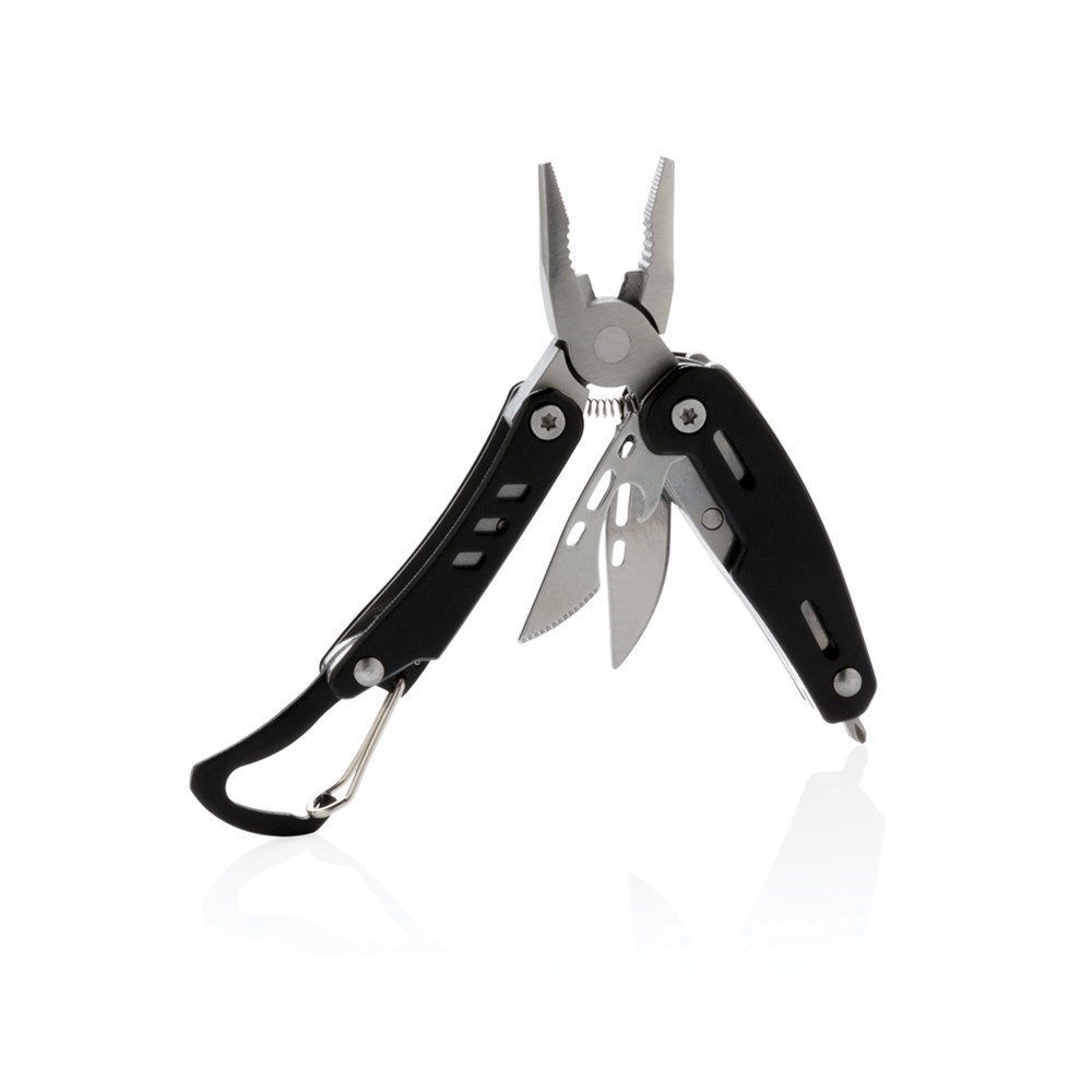 Kompaktes Multitool im Aluminium-Case mit 7 Funktionen aus Stainless Steel wie z.B. eine Zange, Messer, Schraubendreher, Säge, Dosenöffner und vielem mehr. In Geschenkbox verpackt.
