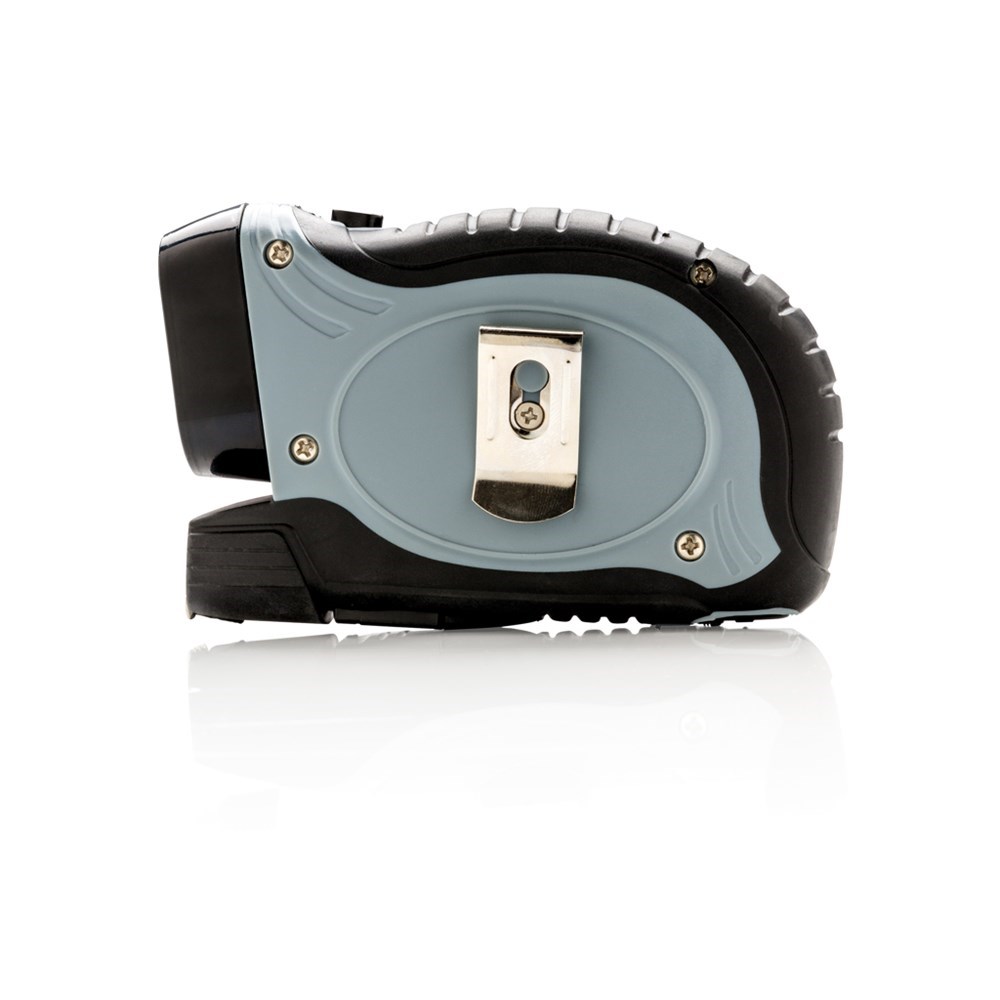 ABS Maßband mit 2 Funktionen. Das Band hat ein einziehbares 5m/19mm Stahlband mit Druckknopfverschlussmechanismus. Auf der Vorderseite befindet sich ein weißes LED-Licht als zusätzliche Lichtquelle, das mit dem Druckknopf oben an- und ausgeschaltet werden kann. Auf der Rückseite befindet sich ein Gürtelclip. Inklusive Batterien für den direkten Gebrauch.