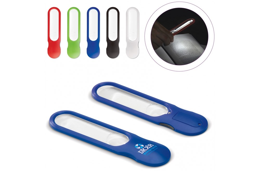 Eine Lupe in einer handlichen und praktischen Form mit einer schönen Druckfläche. Die Lupe hat eine angenehme Form und ist mit einer nützlichen Lampe ausgestattet.