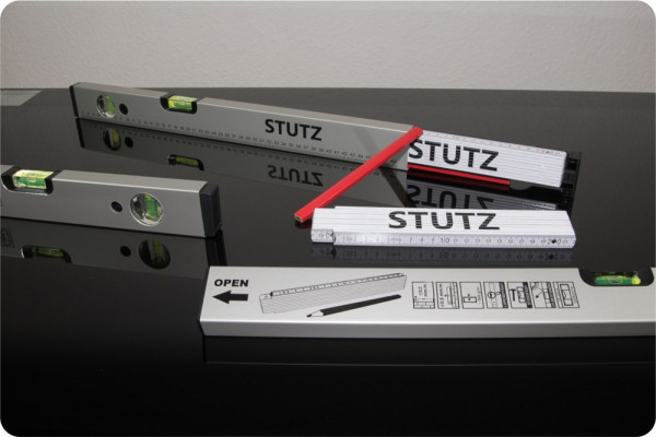 Hochwertige Aluminium-Wasserwaage 50cm mit Zollstock 2m und Zimmermannsbleistift. Beide Zusatzartikel befinden sich seitlich in einem Schubfach. Der Qualitäts-Maßstab 2m besitzt eine 90° Einrastung aller Glieder und eine Winkeleinteilung unterhalb der ersten Glieder. Die Wasserwaage besitzt horizontal und vertikal eine Messgenauigkeit von 0,5mm/m. Das Aluprofil ist mit 560g/m sehr stoßfest und verwindungssteif. Die Libellen sind UV-resistent. Auf die Libellen mit Einfassungen gewähren wir 30 Jahre Garantie. Wasserwaage eignet sich gut als Prämie oder Präsent für Handwerker, Techniker oder Heimwerker.