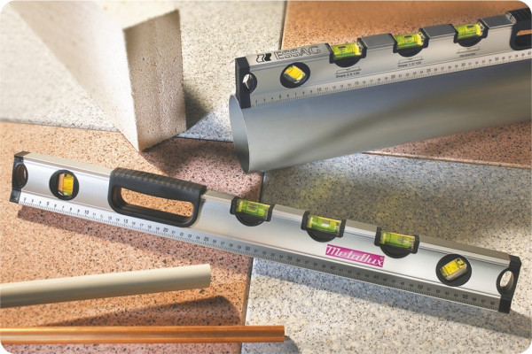 Bestseller Aluminium-Wasserwaage mit 5 Libellen für Horizontal-, Vertikal- und 45° Messungen. Mit 2 weiteren, voreingestellten Libellen können folgende Neigungen exakt ermittelt werden: - 1,5% Bodenangleichung zum Treppenansatz, Fliesen einer bodentiefen Dusche z. B. - 3,5% Abflussrohre, Terrassenanlage etc. V-Profil auf Unterseite dient der Auflage auf Rohren etc. Stabiles Aluprofil silberfarbig eloxiert mit Handgriff für optimales Handling. Schwarze cm-Skalierung auf beiden Seiten.