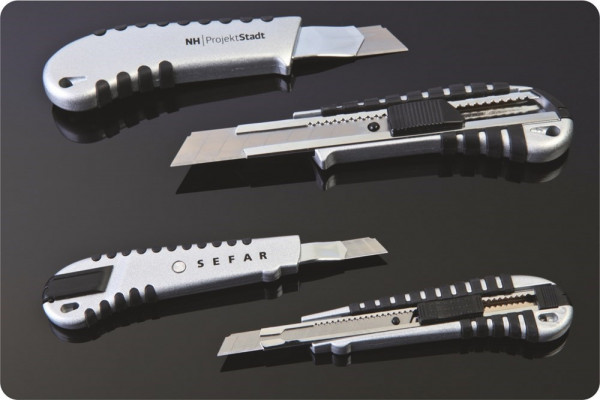 Mit dem Bestseller-Quick-Cut schneiden Sie immer gut ab.Stabiles Metall-Druckgussgehäuse mit Streifengummierung garantieren eine Robustheit und Langlebigkeit, die in dieser Preisklasse außergewöhnlich ist.Die Brechklinge ist sehr scharf und wird in der Metallschiene automatisch arretiert.Gute Werbefläche auf dem silbernen Metallgehäuse.
