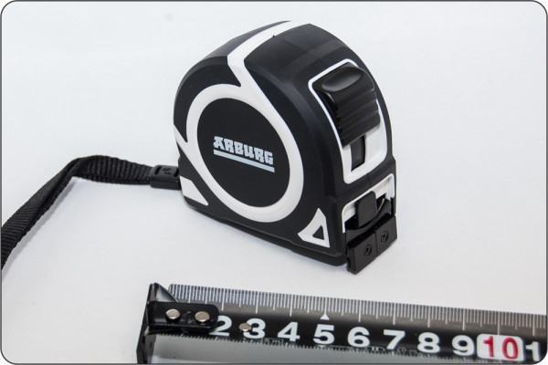 Top-Bandmaß sowie stärkster (bis 700g) und längster (5m) Magnetheber im Werbeartikelmarkt Europas.Schwarzes Stahlband als optisches Highlight mit extra großen Ziffern in weiß-rot zur optimalen Ablesung.Weiße Stahlbandrückseite für Höhenmessungen von Decken oder Regalen, ohne dass das Band abknickt. Dank hoher Stahlqualität Band stabil bis zu Auszugslänge von 2m.Hohe Magnetkraft des Bandanfangswinkels durch integrierten Neodym-Magneten. Dieser zieht Schrauben, Nägel und Metallwerkzeuge aus einer Höhe bzw. Tiefe von bis zu 5m an. Bandmaß 3m siehe Tabelle. Garantie* 3 Jahre.