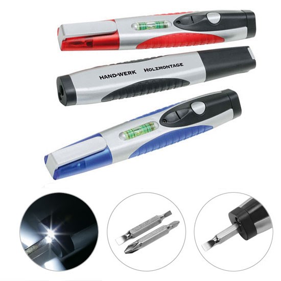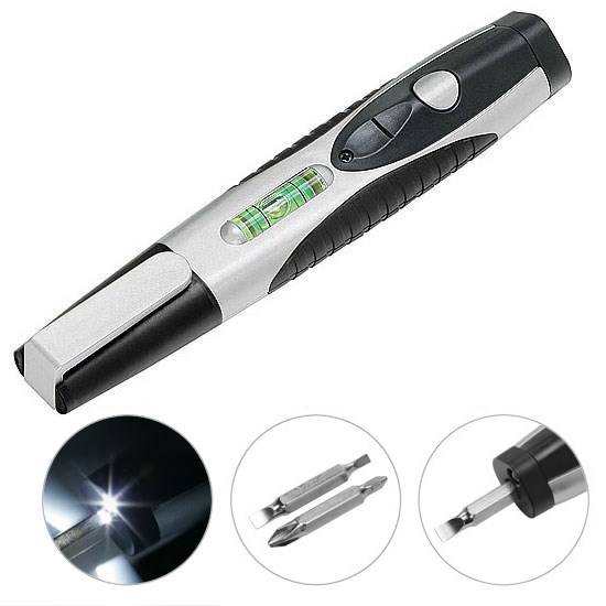 mit 2 Doppelbits, LED-Lampe (weiß), inkl. 3 Batterien und Wasserwaage