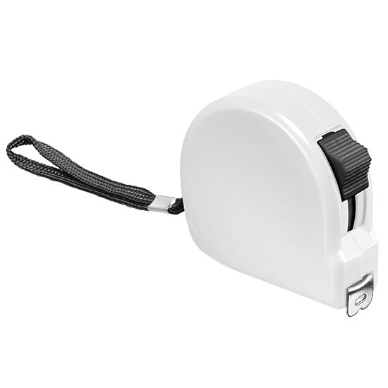 2 m, mit cm- und Inch-Einteilung, Feststeller, Rückholfunktion, Gürtelclip und Handschlaufe; Doming möglich.