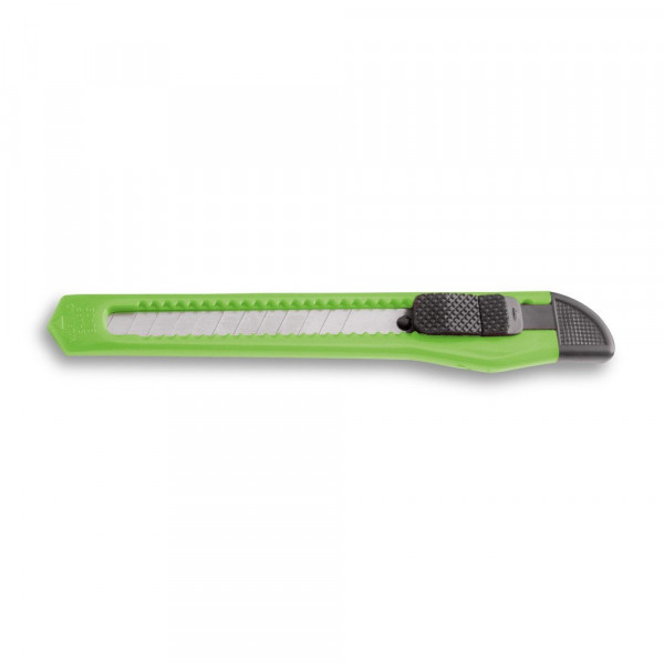 Teppichmesser mit abtrennbarer Feststellklinge, um die Sicherheit zu gewährleisten. Die Feststellklinge ist am oberen Ende einstellbar. Erhältlich in unterschiedlichen Farben. 130 x 20 x 8 mm